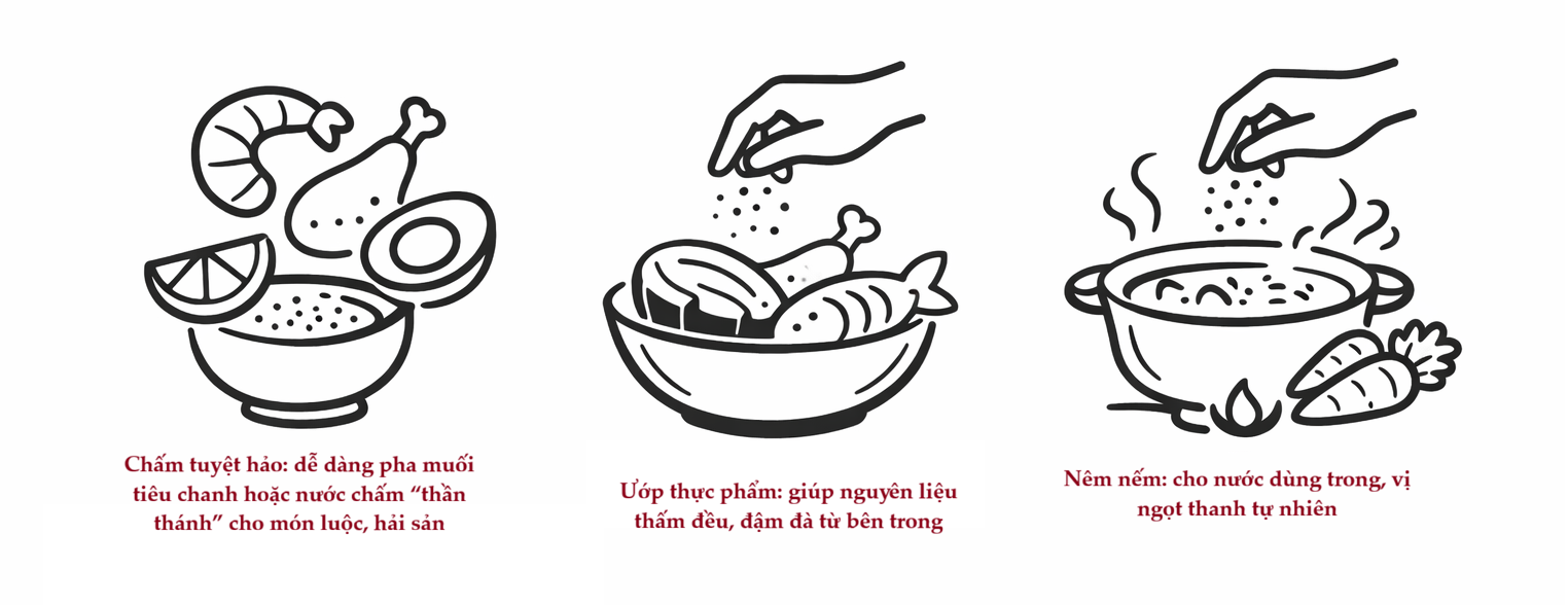 - Chấm tuyệt hảo: dễ dàng pha muối tiêu chanh hoặc nước chấm “thần thánh” cho món luộc, hải sản